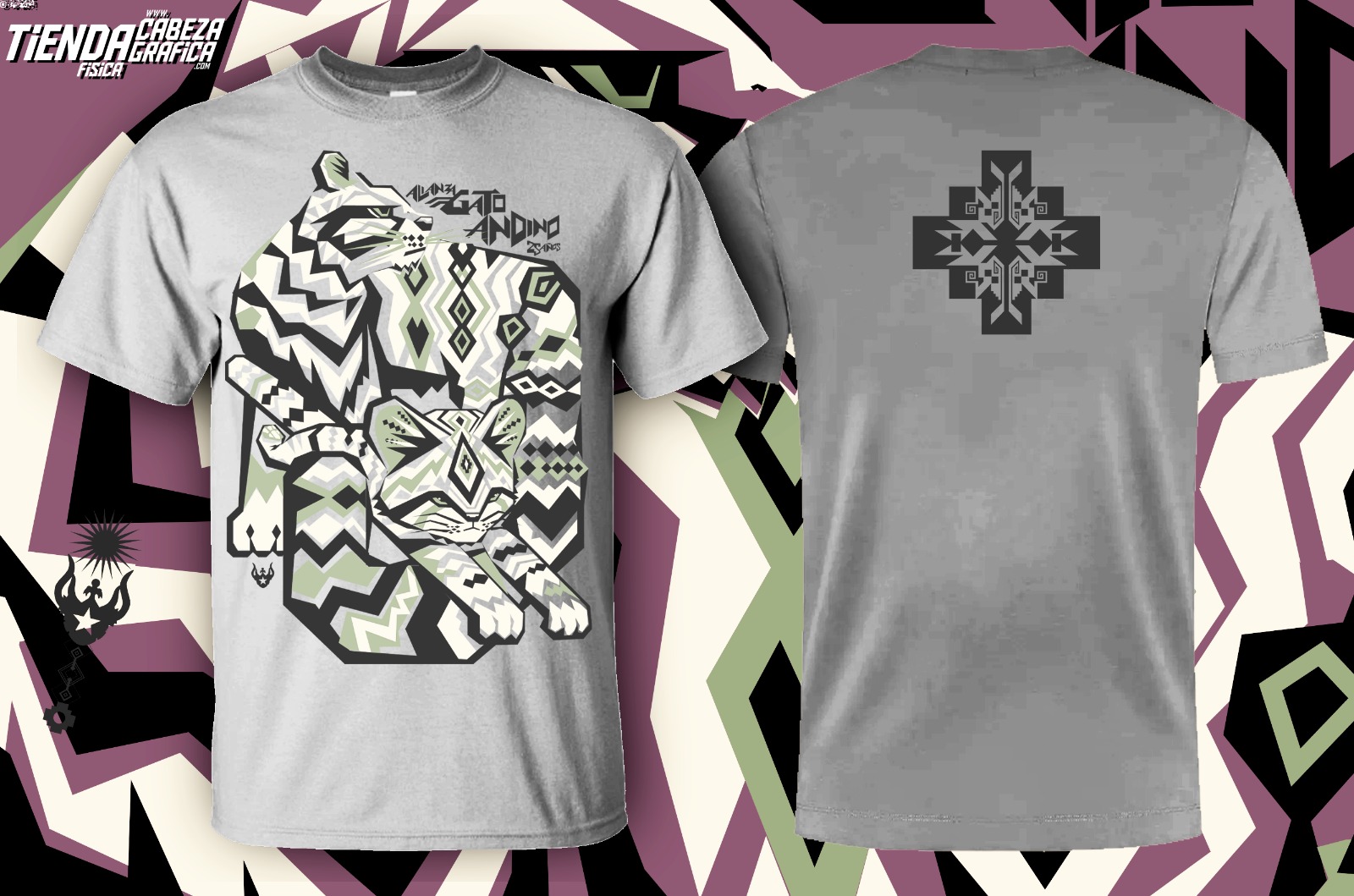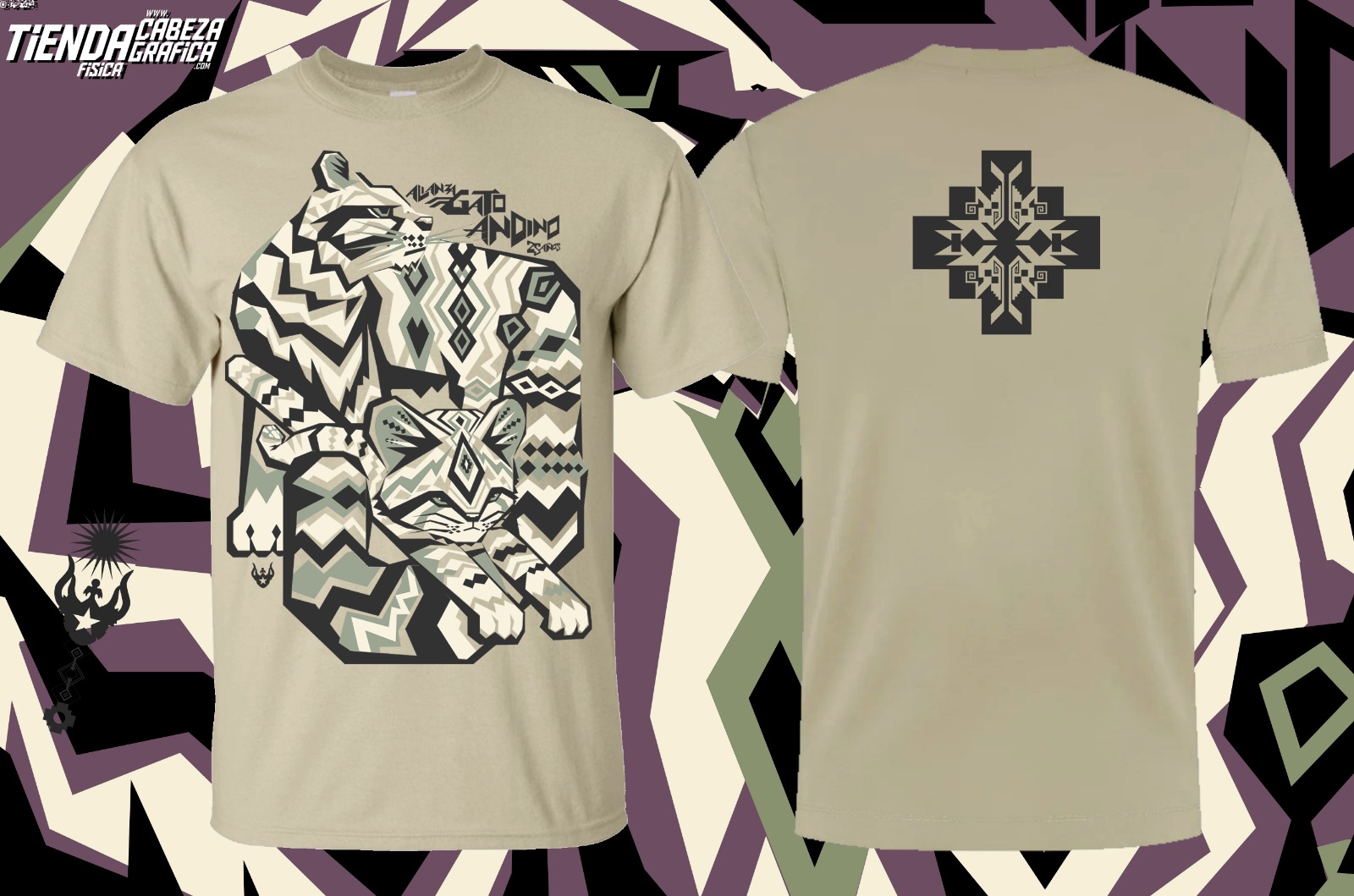 Gato Andino 25 años. Polera hombre. Algodón. Varias tallas y colores.